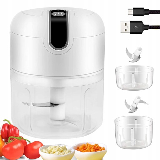 - Nasz elektryczny rozdrabniacz ma dwie miski (250 ml i 100 ml), w których możesz siekać orzechy, imbir, czosnek, cebulę i inne warzywa.