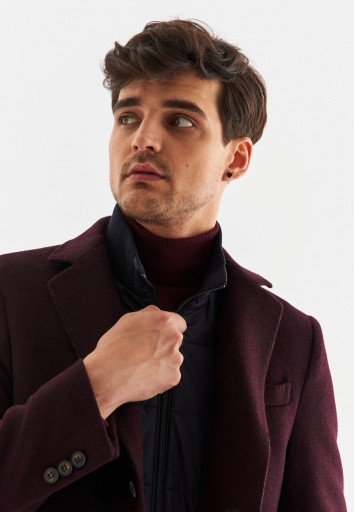 Bordowy płaszcz męski z domieszką wełny PAKO LORENTE