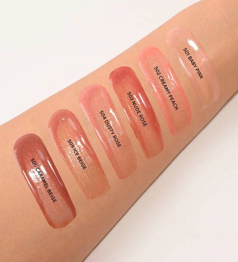 6 wykwintnych półprzezroczystych odcieni które są idealne do codziennego makijażu. Może być stosowany samodzielnie lub jako warstwa wierzchnia do szminek i konturówek, aby dodać objętości i połysku.
