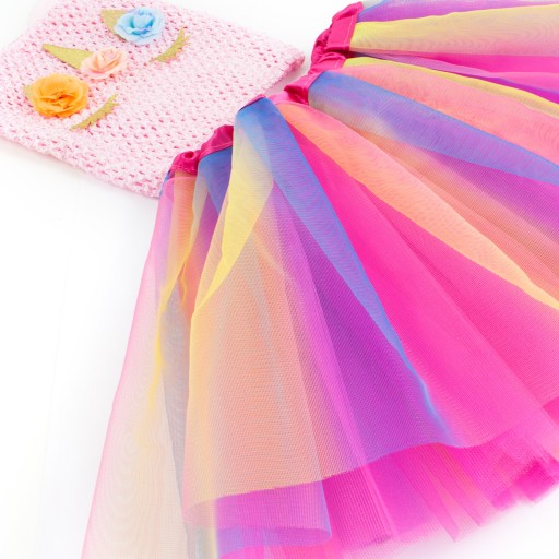 Śliczna tiulowa propozycja w stylu TUTU. Klasyczna, taneczna spódniczka TUTU bez podszewki krępującej ruchy wraz z topem wykonanym z siateczkowej gumy. Top można założyć na bluzeczkę lub body zaś spódniczka idealnie komponuje się z rajstopami lub legginsami. Top został przepięknie ozdobiony.