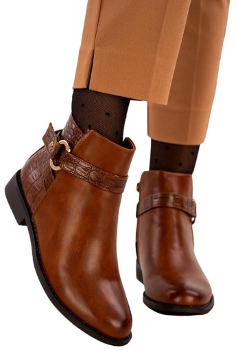 Brązowe botki sztyblety damskie na płaskim spodzie Senso