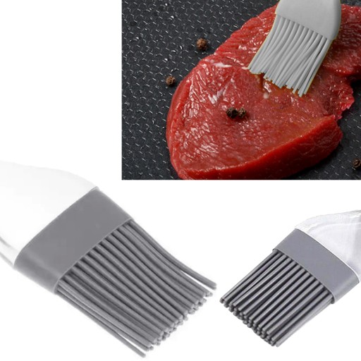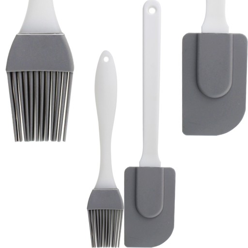 Pędzelek i łopatka silikonowa to niezbędne akcesoria w każdej kuchni. Za pomocą pędzelka bez trudu rozsmarujesz płynne produkty na potrawach, wypiekach i deserach. Możesz go użyć do np. rozprowadzenia marynaty na mięsie lub natłuszczenia formy do pieczenia. Łopatka jest idealna do mieszania składników oraz wyrównywania mas na cieście lub na blaszce.
