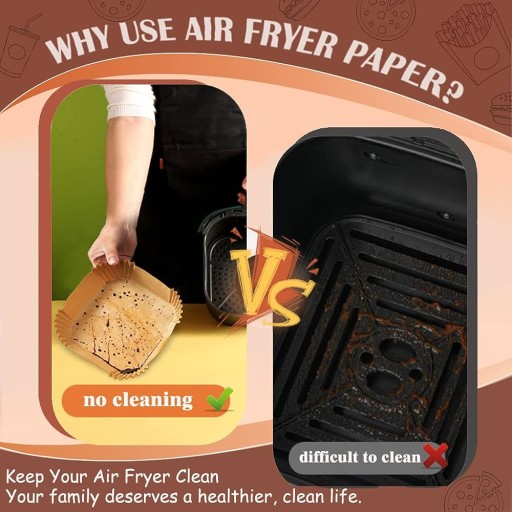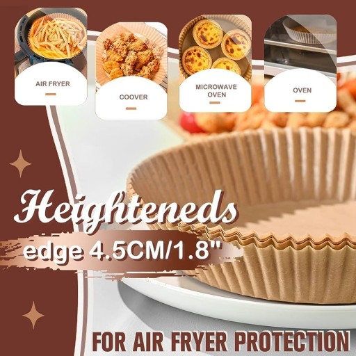 - Koniec ze stresowym koszem do czyszczenia - jeśli nienawidzisz czyszczenia po pieczeniu, nasz papier do frytkownicy na powietrze będzie Twoim najlepszym pomocnikiem. Nasz papier do pieczenia na gorące powietrze skutecznie zatrzymuje resztki żywności z dala od frytkownicy i sprawia, że jest ona tak czysta jak nieużywana, oszczędzając czas i wysiłek. Wydłuż żywotność frytkownicy na gorące powietrze