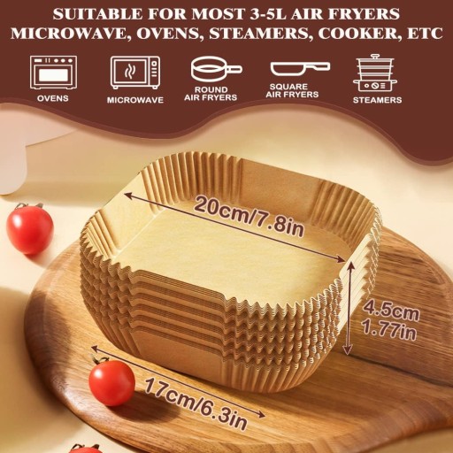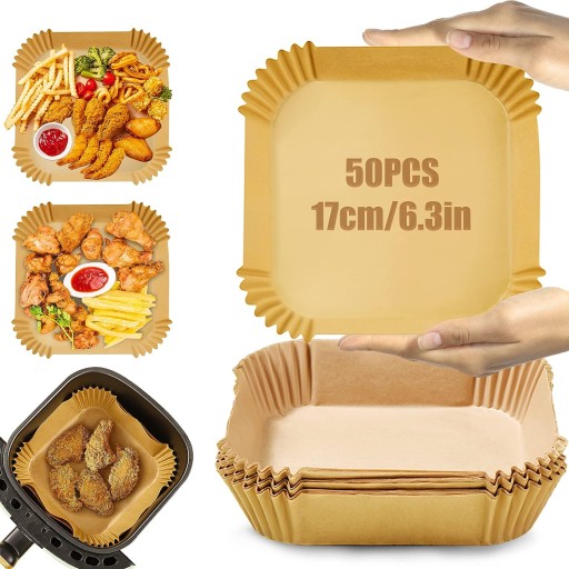 Herbst 50 sztuk papieru do pieczenia do frytkownicy na gorące powietrze, Airfryer, kwadratowy, wodoszczelny, olejoodporny, kompatybilny z Ninja, COSORI, Philips, Princess
