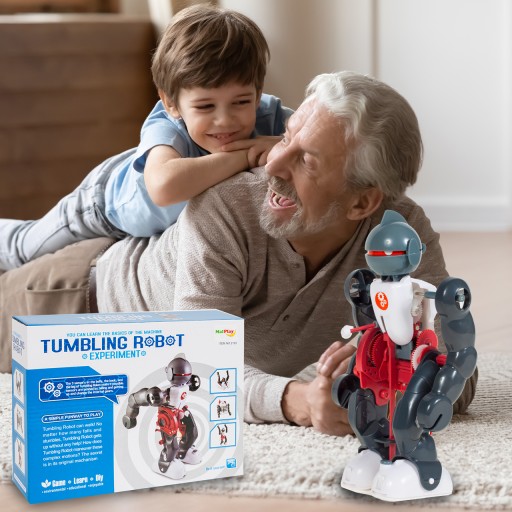 Robot Tumbling samoczynnie chodzi, gdy napotka na przeszkodę przewraca się, ALE! potrafi samoczynnie wstać na nogi. Należy go złożyć od podstaw co da wiele frajdy majsterkowiczom. Robot posiada wiele funkcji i przekładni, które rozbudzą kreatywność.