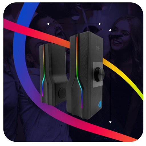 - Standardem w sprzęcie dla graczy jest kolorowe podświetlenie LED RGB. Takiej funkcji nie zabrakło w naszych głośnikach.