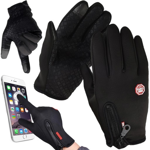 RĘKAWICE ZIMOWE RĘKAWICZKI SPORTOWE L DOTYKOWE NA ROWER UNIWERSALNE CZARNE