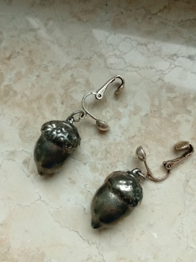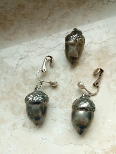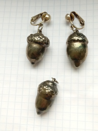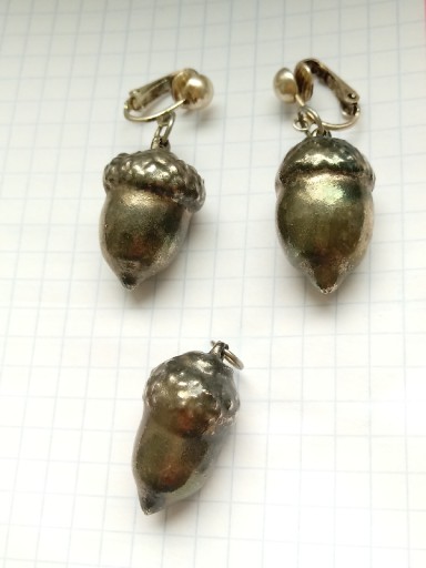 Komplet w kolorze srebrno-miedzianym składający się z kolczyków oraz zawieszki. Kolczyki w formie klipsów.