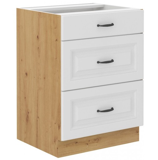 Szafka kuchenna - 60 D 3S BB - BEZ BLATU - STILO FRONT BIAŁY MAT KORPUS DĄB ARTISAN