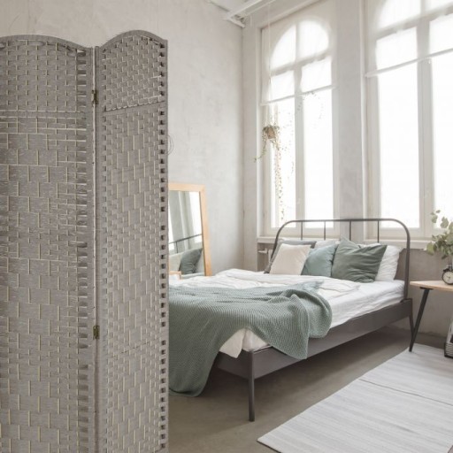 Dzięki ściance działowej możesz inteligentnie podzielić swój dom na różne strefy. Stwórz przytulne miejsca odosobnienia w salonie, strefę przebieralni w sypialni lub po prostu użyj przegrody jako elementu dekoracyjnego. Dzięki eleganckiemu, tkanemu wzornictwu, szary ekran prywatności przyciąga wzrok w każdym pomieszczeniu. Jeśli nie potrzebujesz czteroczęściowego dzielnika pokoju, możesz go po prostu złożyć i przechowywać, aby zaoszczędzić miejsce.