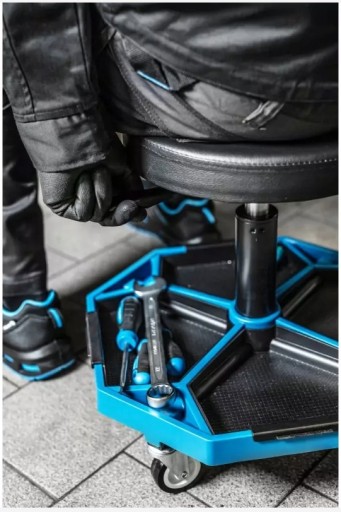 Teleskopowe Siedzisko Warsztatowe to niezastąpione rozwiązanie w każdym profesjonalnym warsztacie. Dzięki mobilności oraz regulacji wysokości siedziska, prace stają się wygodniejsza. Wyznaczone miejsce u podstawy, pozwala przechowywać mniejsze elementy.