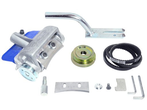 Opis: Urządzenie może być zamocowane na różnych modelach pilarek powyżej 1,5 KM. Prowadnica musi być zastąpiona przez ramię nośne korowarki Bęben sprzęgła oraz płytka na mocowaniu prowadnicy muszą zostać zdemontowane przed założeniem korowarki. Bęben sprzęgła musi zostać zastąpiony kółkiem pasowym. Do naciągania paska może być użyty naciągacz łańcucha. Wygodna praca na pochyłościach