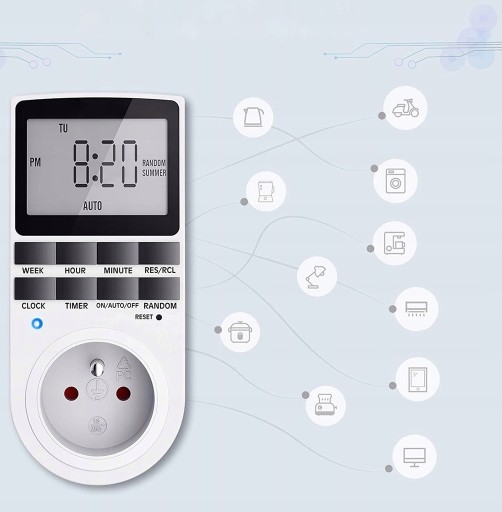 - Dzięki programatorowi czasowemu zredukujesz koszty energii pobieranej przez urządzenia, które często pozostawiamy podłączone do sieci elektrycznej, takie jak ładowarki, zasilacze, telewizory, komputery itd. Programator pobiera przy tym niewiele energii.