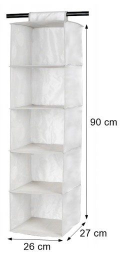 Organizer posiada 5 półek dzięki czemu łatwością będzie można posegregować ubrania. Pionowa konstrukcji mocowana do rurki minimalizuje miejsce które zajmuje w szafie pozwalając by każda rzecz zyska swoje odpowiednie miejsce