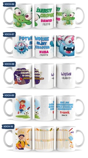 - cena dotyczy 1 sztuki kubka z dwustronnym nadrukiem z możliwością personalizacji - DOWOLNE IMIĘ I KLASA (jeśli jest widoczna we wzorze)