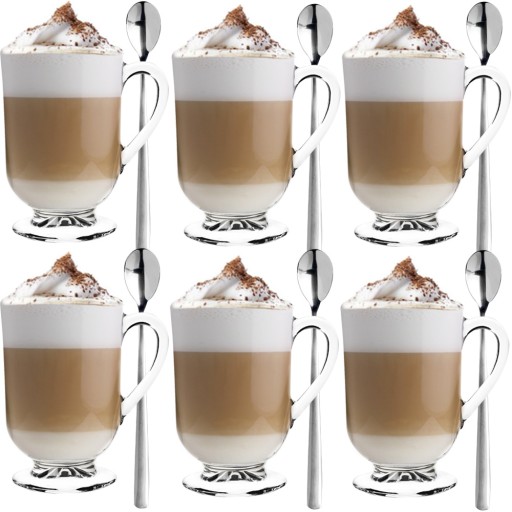KOMPLET SZKLANEK 300 ML + 6 DŁUGICH ŁYŻECZEK