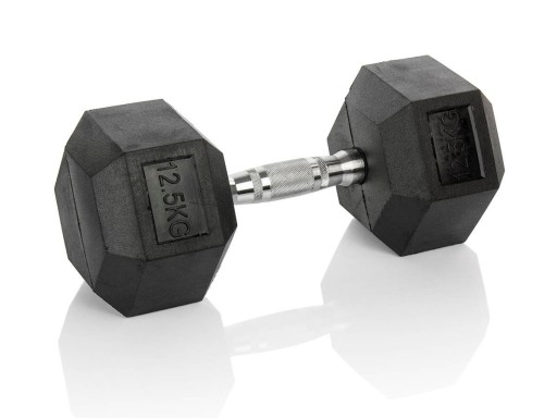 Hantla Hexagonalna Vivo 12,5 kg - Trening przy użyciu hantli Hexagonalnych Vivo pozwala na powielanie niemal wszystkich rodzajów ćwiczeń, wykonywanych przy użyciu tradycyjnej sztangi. Ponadto hantla hexagonalna daje użytkownikowi możliwość pracy asymetrycznej – przy użyciu tylko jednego ramienia. Hantla posiada gumowane głowice, odporne na uderzenia. Ergonomiczny kształt gwarantuje pewny uścisk.