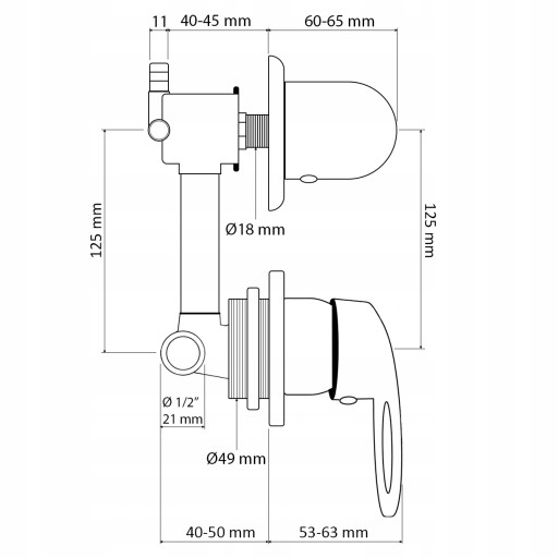 - 2x wejście wody CIEPŁA/ZIMNA - 1/2"