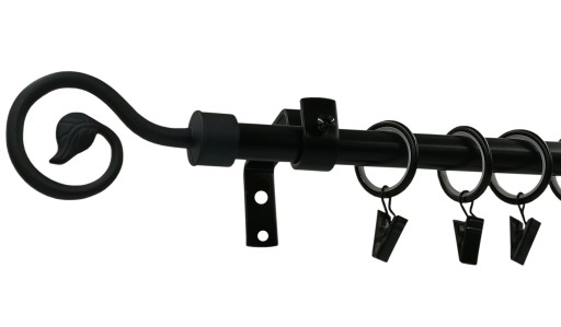 Przedmiotem aukcji jest KOMPLETNY METALOWY KARNISZ pojedynczy typu LOFT o średnicy rurki fi 16mm w kolorze CZARNY MAT z zakończeniem SPIRALKA.