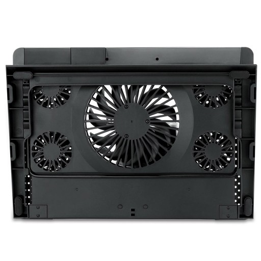 Szybki przepływ powietrza zapewnia pięć cichych wentylatorów – jeden z nich został umieszczony w centralnej części podkładki, a cztery pozostałe na jej krawędziach. Dzięki temu cały laptop jest równomiernie chłodzony i może działać jeszcze sprawniej.