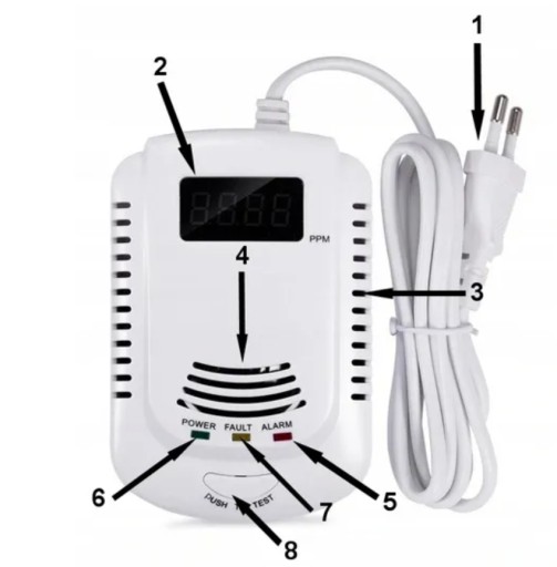 - Wykrywa: CO(czad) oraz gaz ziemny, propan, butan, LPG
