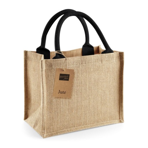 Mała torba W412 Mini Gift marki Westford Mill jest wykonana ze wzmacnianej juty w naturalnym kolorze z uchwytami w kolorze czarnym. Uchwyty do noszenia mają długości 35cm. Dostępna w wielu wersjach kolorystycznych. Dzięki swojej wielkości jest idealna na małe zakupy, na lunch lub drugie śniadanie zabierane do pracy, szkoły lub w podróż. Ale nie tylko. Doskonała także jako jutowa torba na drobne upominki lub prezenty. Świetnie sprawdza się również podczas różnych reklamowych eventów.