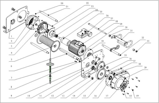 34 stronna instrukcja zawiera, komplet informacji niezbędnych do bezpiecznego użytkowania wciągarki. Instrukcja w języku polskim.