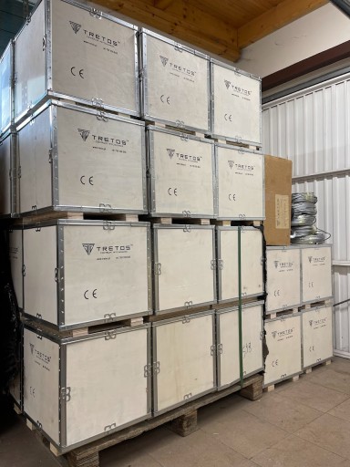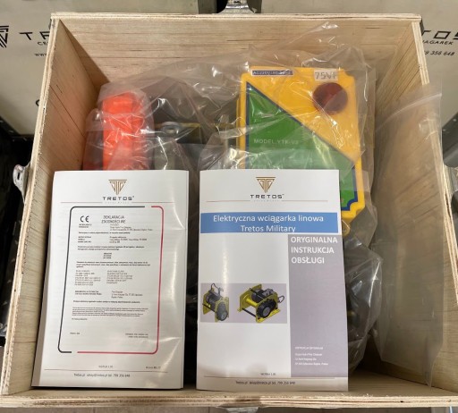 Dbając o zadowolenie Klientów, Wyciągarki marki Tretos są pakowane w solidną skrzynię. Skrzynia jest wykonana ze sklejki posiada stalowe okucia oraz dwie nogi ułatwiające podnoszenie. Dzięki temu zabezpiecza wciągarkę przed uszkodzeniem.