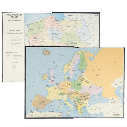- Kalendarium: 5 języków (PL, EN, DE, RUS, FR), imieniny i święta, fazy księżyca, wschody i zachody słońca, na dole kalendarium plan całego roku