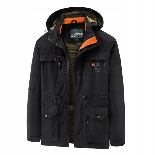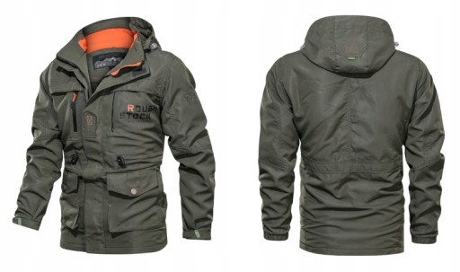 Męska kurtka z kapturem, która skutecznie ochroni przed chłodem oraz wiatrem. Posiada kaptur i kilka kieszeni oraz wojskowy look.