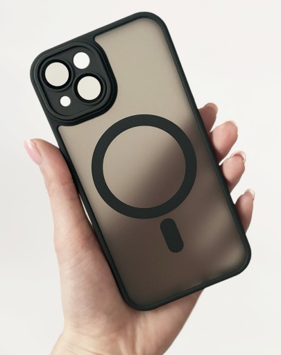 Etui o hybrydowej konstrukcji z wbudowanym magnetycznemu pierścieniem współpracującym z akcesoriami MagSafe. Zapewnia pewną ochronę smartfona przed zarysowaniami czy uderzeniami. Plecki wykonane z wytrzymałego, odpornego na wstrząsy poliwęglanu o matowym, półprzezroczystym wykończeniu. Ramka elastyczna kolorze czarnym idealnie dopasowuje się do telefonu. Etui posiada w pełni zabudowaną wyspę aparatów wraz z wbudowanymi szkiełkami na obiektywy, które w razie potrzeby można zdemontować. Pewna przyjemność z użytkowania dzięki satynowemu, przyjemnego w dotyku wykończeniu oraz responsywnym, metalicznym przyciskom bocznym.