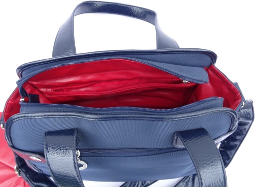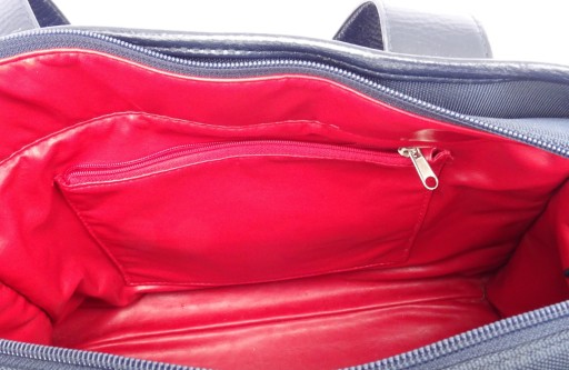 Wielką zaletą torby jest, iż zarówno wnętrze torby jak i wnętrze kieszonek torby pokryte są materiałem wodoodpornym zbliżonym do ceraty - dzięki temu wnętrze torby zawsze pozostanie czyste!