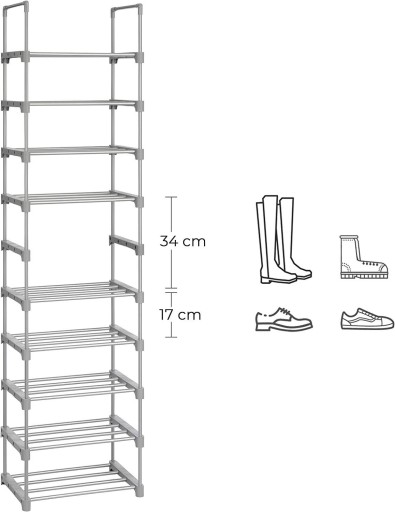 - Nowe buty będą serdecznie chodzić! Musisz przechowywać wiele butów z powodu braku miejsca? Bardzo szkoda dla Ciebie jako imitacja obuwia! Ten regał na buty z 10 półkami jest pomocą. Zapewnia dużo miejsca do przechowywania, dzięki czemu można schować wszystkie nowe buty!