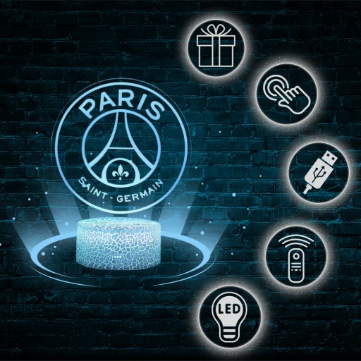 НОЧНАЯ ЛАМПА НАСТОЛЬНАЯ ЛАМПА ДЛЯ ДЕТЕЙ ПАРИЖ PSG ЛОГОТИП HERB LED 3D + ПУЛЬТ ДУ