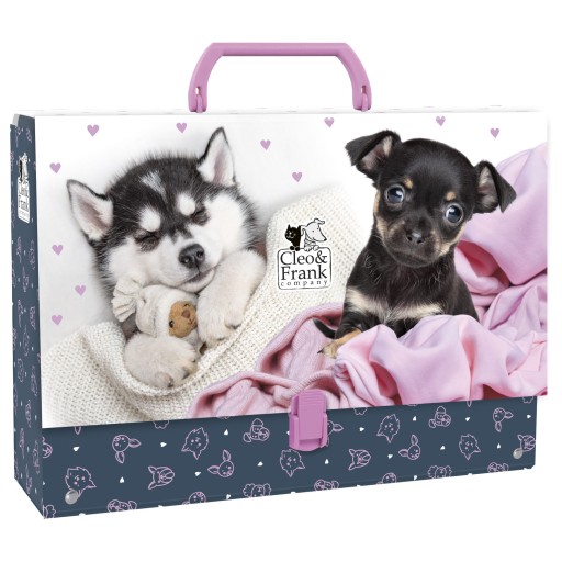 Teczka szkolna z rączką dla dzieci idealna do przenoszenia i przechowywania prac plastycznych czy przyborów artystycznych. Wykonana z wysokiej jakości, grubego kartonu. Zamykana na wygodny, plastikowy klips. Teczka idealna dla każdej fanki piesków. ?