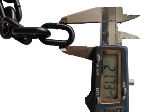 W związku z ogromnym zainteresowaniem łańcuchami lakierowanymi proszkowo wprowadzamy do oferty łańcuch fi 6mm - mocniejsza opcja o max sile zrywania około 1000kg. Gruby, solidny drut, na dalszych zdjęciach w aukcji dokładne odczyty z suwmiarki.
