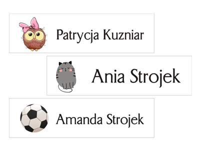 Wymiar jednej naprasowanki i naklejki to ok. 48 mm x 14 mm. Oczywiście istnieje możliwość przesłania dowolnego obrazka przez Państwa. Po zakupie kompletu proszę o informację jakie mają być umieszczone na naprasowance (imię i nazwisko, numer obrazka).