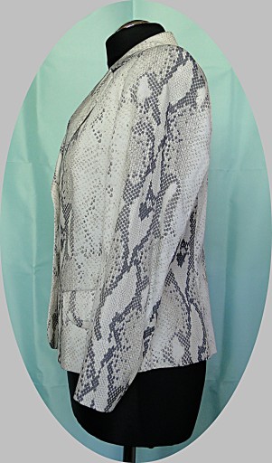 Marynarka jest w kolorze ecru z szaro - beżowymi wzorami.