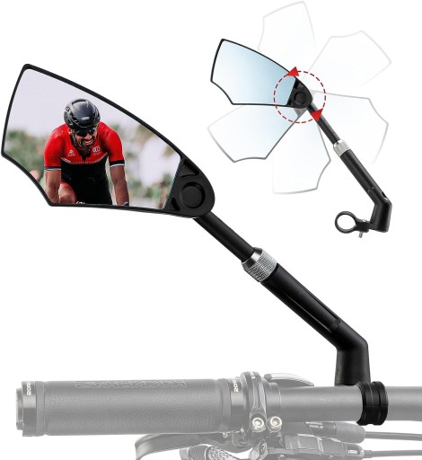 - 【REGULACJA 360°】Zarówno powierzchnię lusterka, jak i ramię lusterka można regulować w zakresie 360°, co pozwala na idealne dostosowanie do potrzeb użytkownika, a skalowany wspornik lusterka rowerowego można swobodnie wysunąć na długość do 50 mm.