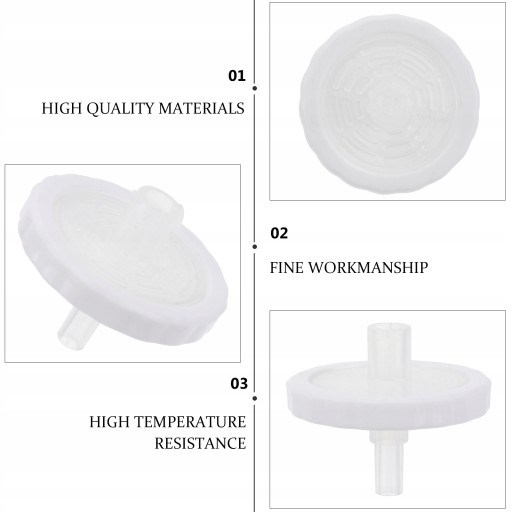 Wykonany z wysokiej jakości materiału PP, który ma zalety doskonałej odporności chemicznej, odporności na wysoką temperaturę, odporności na kwasy i zasady. Filtry są dobrze dopasowane, bezpieczne i trwałe, mają odpowiedni rozmiar do filtracji, są solidne i umożliwiają łatwą kontrolę wizualną filtrowanego materiału. Filtr zebrał o wiele więcej materiału, niż się spodziewałeś, i nadal miał więcej życia.