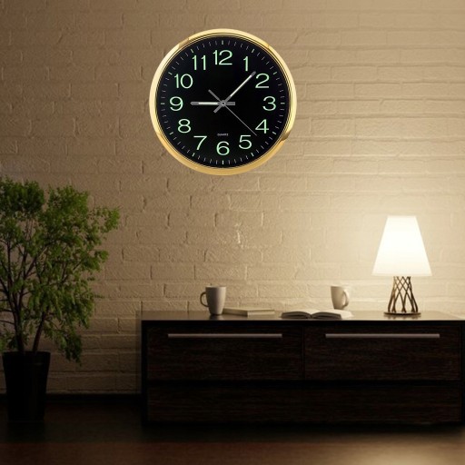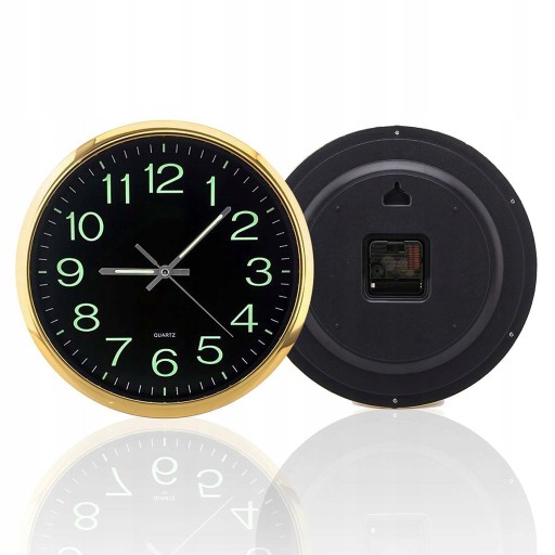 Duży świecący Zegar ścienny Z Lampką Nocną Quartz Indoor Hotel Shops Cafe Opis: Glow in The Dark - cyfry i wskazówki, które mają funkcję oświetlenia nocnego. Prosi o wchłonięcie wystarczającej ilości energii świetlnej w ciągu dnia. W nocy jest emitowany w sposób fluorescencyjny, dzięki czemu można zobaczyć światło w nocy lub w ciemności. (Wskazówki: zegar ścienny będzie świecił w ciemności przez około 5-6 godzin, czas świecenia zależy od światła wchłonięty w ciągu dnia) Łatwy do odczytania - projekt z dużymi cyframi kontrastuje z czarną tarczą, co ułatwia odczyt czasu pod dowolnym kątem. idealny do jadalni, salonów, pokoi rodzinnych, sypialni, gabinetu, kuchni, biura i sali konferencyjnej. Cichy ruch zamiatania - Najwyższa jakość precyzyjnego mechanizmu kwarcowego gwarantuje dokładny czas, a także cichy ruch zapewnia dobre środowisko do nauki i pracy. Prosty w instalacji - łatwy w instalacji, wystarczy włożyć mały gwóźdź przez plastikowy haczyk i bezpiecznie zawiesić na ścianie w ciągu kilku sekund. Zasilanie bateryjne - zasilany jedną baterią AA (brak w zestawie). Do zegara należy używać zwykłej baterii węglowej, nie należy używać baterii alkalicznej i akumulatora, które mogą skrócić żywotność mechanizmu i wpłynąć na dokładność czasu. Specyfikacja: Kolor: złota ramka / czarna twarz Rodzaj materiału: Tworzywo abs Ruch: kwarcowy Średnica: 30 cm / 11,81 cala Kształt: okrągły Pakiet zawiera: 1 sztuka zegar ścienny
