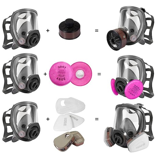 - ✔️ Nasza maska pełnotwarzowa tworzy hermetyczne uszczelnienie, chroniąc Cię przed latającymi odłamkami i niebezpiecznymi gazami lub oparami. Krawędź respiratora jest wykonana z podwójnego silikonu, który może ściśle przylegać do twarzy i pełnić rolę szczelnej ochrony.