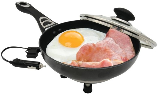 - Patelnia elektryczna o średnicy 20 centymetrów zasilany z gniazdka elektrycznego pojazdu. Wyposażony jest w kabel o długości 160cm z końcówką umożliwiającą podłączenie do gniazda zapalniczki 24V.