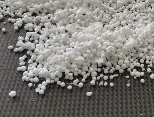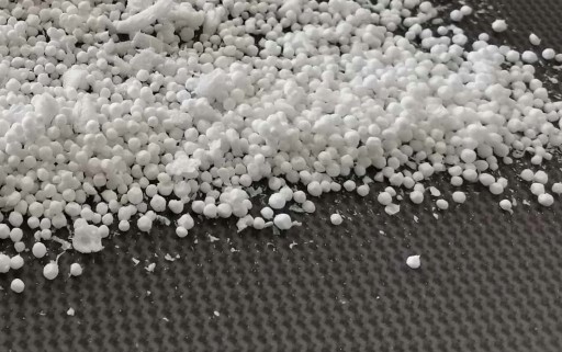 Regranulat z przemiału styropianowego i styroduru xps bez zanieczyszczeń. Jest zapakowany w worek i pudełko kartonowe.
