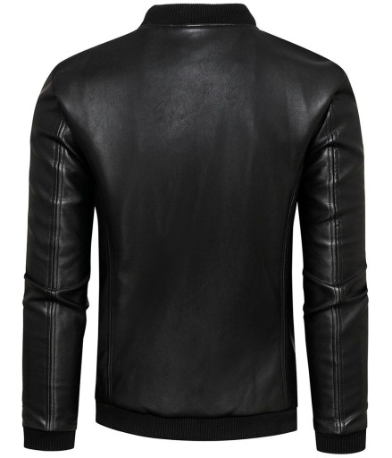Kurtka męska czarna na stójce. Kurtka w tradycyjnym kolorze nigdy nie wychodzi z mody. Posiada kryty suwak na całej długości. Kurtka zaopatrzona została w podszewkę, przez co jest idealną kurtką na wiosnę oraz jesień. W pasie i rękawach posiada dresowe ściągacze, dzięki czemu fajnie przylega i ma zgrabny fason. Z boku znajdziemy praktyczne - zasuwane kieszenie, wewnątrz również - jedną wsuwaną. Kurtka jest wykonana z materiału typu ekoskóra o składzie 100% poliuretan.