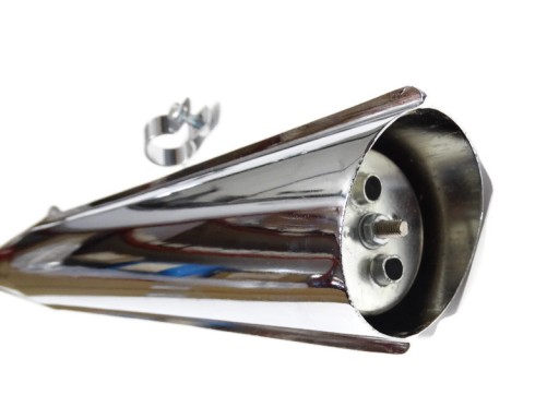 Nowy tłumik wydechu pokryty chromem, wykonany na wzór oryginału, w komplecie obejmą.