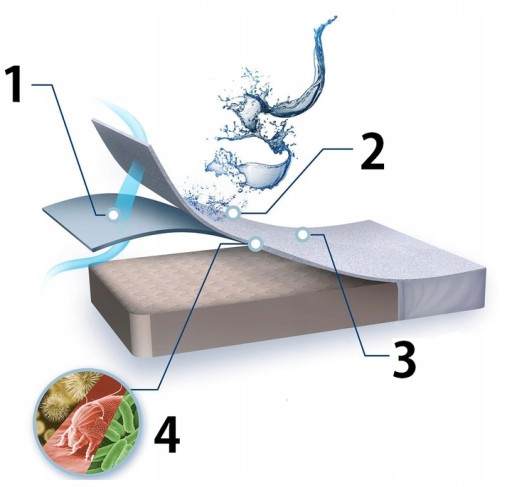 Wodoodporna warstwa wewnętrzna chroni materac.