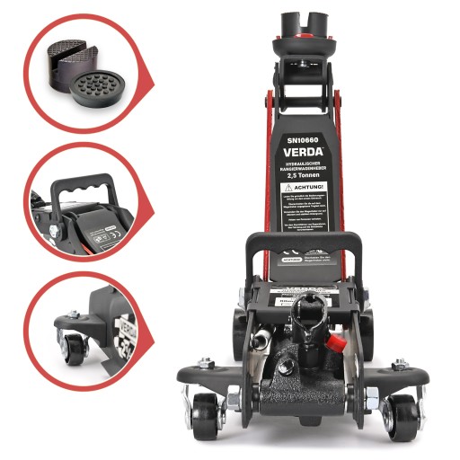 Ergonomiczny design oraz solidna konstrukcja pozwalają na efektywne manewrowanie i stabilność nawet podczas obsługi większych pojazdów o maksymalnej wadze do 2,5T.