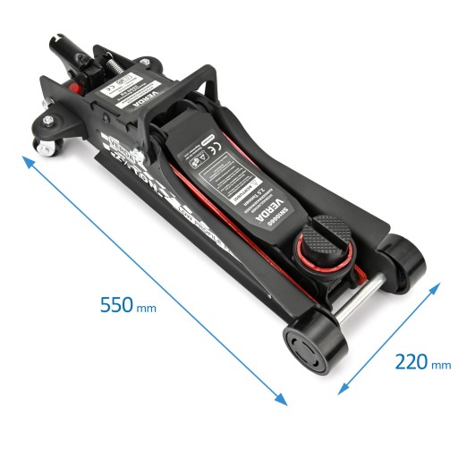 Wysokiej jakości podnośnik hydrauliczny niskoprofilowy 2,5T typu ŻABA. Wykonany z grubej blachy stalowej, zapewniającej odpowiednią sztywność konstrukcji. Wygodny w użytkowaniu, wyposażony w 4 koła, które umożliwiają szybkie podstawienie podnośnika we właściwe miejsce. Praca w zakresie od 80 do 380 mm. Podnośnik niskoprofilowy może być używany podczas pracy z samochodami o obniżonym zawieszeniu.