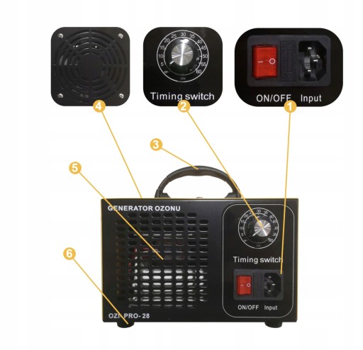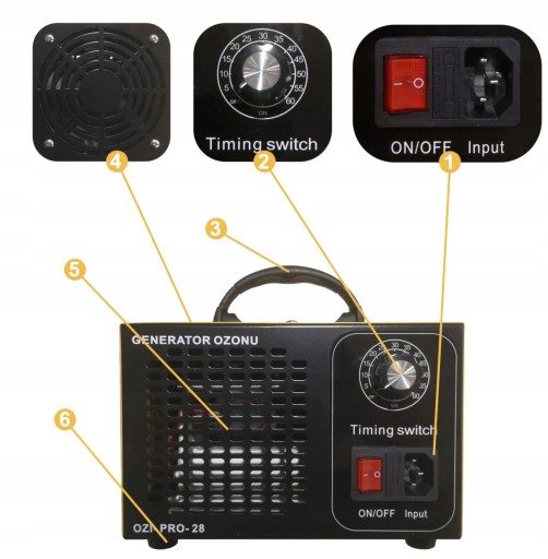 Na obudowie generatora ozonu została umieszczona instrukcja użytkowania ozonatora w języku polskim dzięki czemu nawet pod dłuższej przerwie nie używania ozonatora można sobie szybko i wygodnie przypomnieć zasady używania urządzenia.
